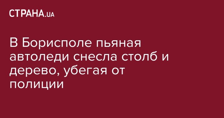 В Борисполе Киевской области пьяная женщина за рулем сбила электроопору и дерево, пытаясь скрыться от патрульных. Об этом сообщает пресс-служба патрульной полиции Борисполя на своей странице в Facebook.