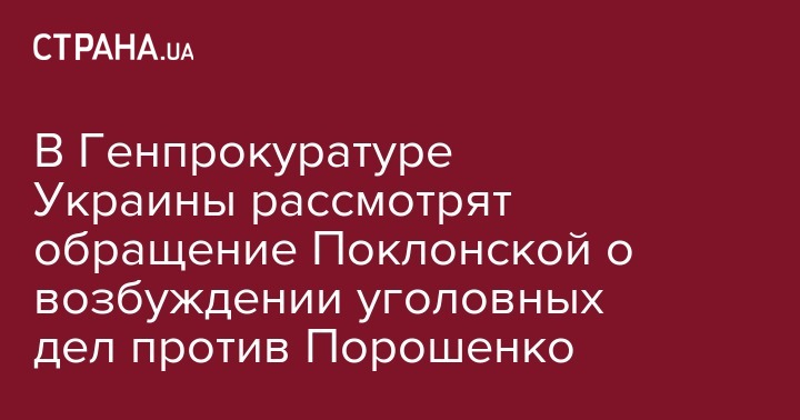 В Генпрокуратуре Украины рассмотрят обращение Поклонской о возбуждении уголовных дел против Порошенко