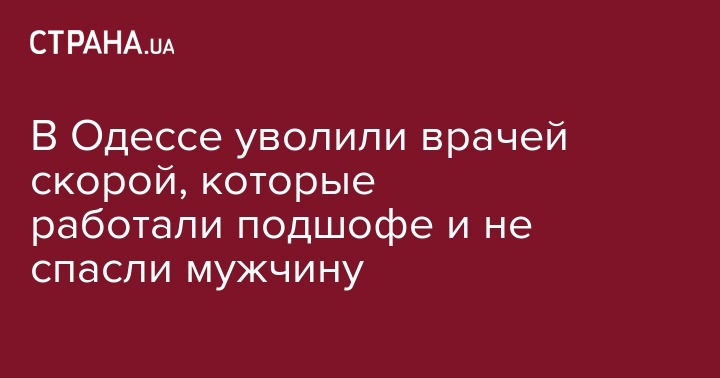 В Одессе уволили врачей скорой, которые работали подшофе и не спасли мужчину