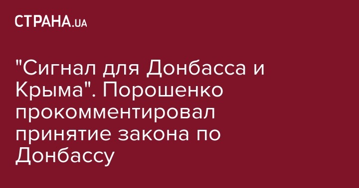 "Сигнал для Донбасса и Крыма". Порошенко прокомментировал принятие закона по Донбассу