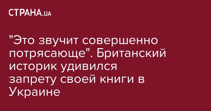 "Это звучит совершенно потрясающе". Британский историк удивился запрету своей книги в Украине