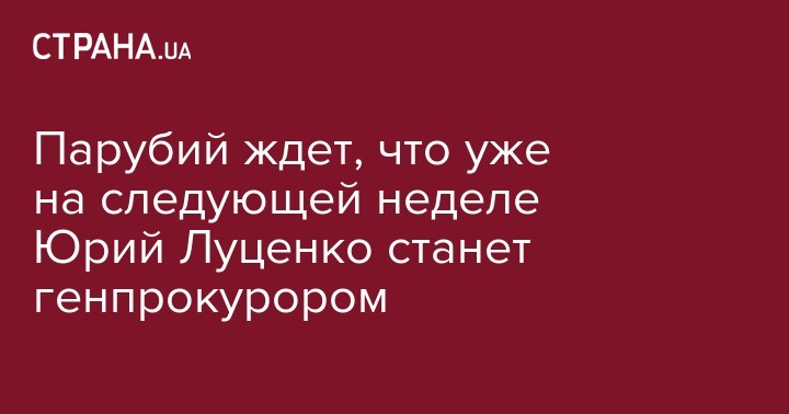 Председатель Верховной Рады Андрей Парубий ожидает, что на предстоящей пленарной неделе парламент одобрит представление президента Украины Петра Порошенко на должность генерального прокурора.