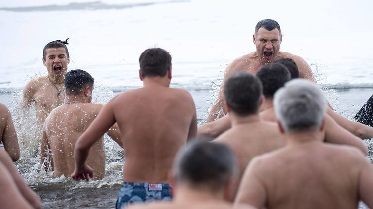 Мэр Киева Виталий Кличко окунулся в прорубь в столичном парке "Наталка". Причем сделал это вместе с главами столичных районов, заместителями председателя КГГА и некоторыми депутатами Верховной Рады и Киевсовета.