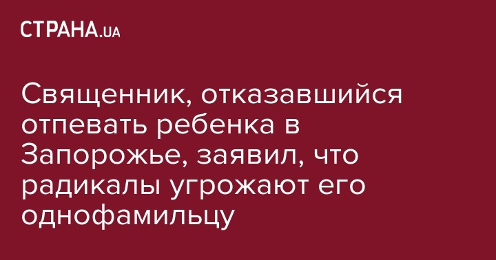 Священник, отказавшийся отпевать ребенка в Запорожье, заявил, что радикалы угрожают его однофамильцу