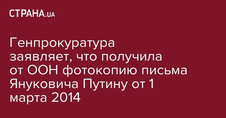 Следователи ГПУ получили официальным путем от секретариата ООН фотокопию письма экс-президента Виктора Януковича в адрес президента России Владимира Путина от 1 марта 2014 года с просьбой использовать Вооруженные силы РФ на территории Украины.