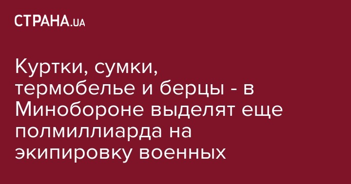 Так, планируется закупить брюки ветровлагозащитные зимние (вид 1) на 115,7 млн гривен, куртки костюма утеплителя (вид 2) на 21 млн гривен, куртки ветровлагозащитные зимние (вид 1) на 234 млн гривен, очки защитные баллистические на 51,6 млн гривен, ботинки с высокими берцами на 75,2 млн гривен, фуражки полевые из ткани (тип 3, класс 7) на 7,1 млн гривен и шапки-подшлемники (модель 1 вид 2) на 2,6 млн гривен и сумки транспортные индивидуальные (тип 2, вид 2) на 49,3 млн гривен.