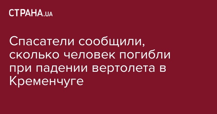 Мы писали, что в Кременчуге разбился вертолет, есть жертвы. На момент аварии не было точно известно о количестве людей на борту говорилось о трех или четырех людях.