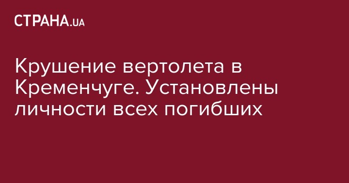 Личности четырех человек, погибших в результате падения вертолета в Кременчуге Полтавской области, установлены.