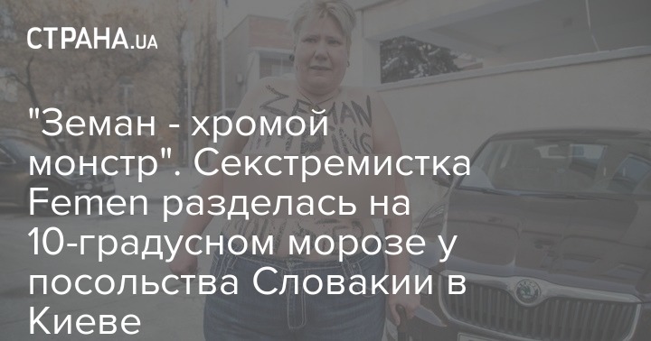 "Земан - хромой монстр". Секстремистка Femen разделась на 10-градусном морозе у посольства Словакии в Киеве