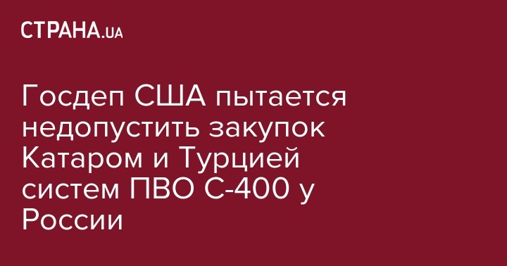 "Мы ведем переговоры с рядом стран и мы примем соответствующие меры, когда придем к решению", - сказал на брифинге высокопоставленный американский дипломат, отвечая на вопросы журналистов о том, какие меры намерен предпринять Вашингтон в отношении Турции и Катара, которые приобретают или намерены приобрести российские ЗРС.