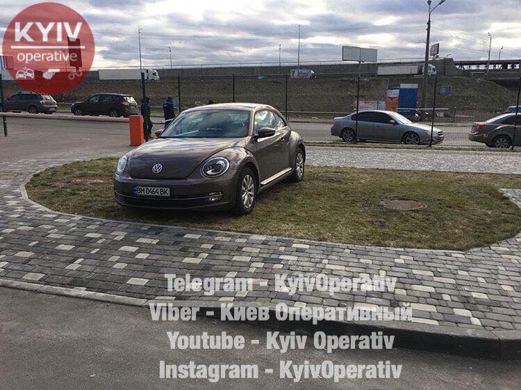В Киеве на набережной героиня парковки поставила "пастись" иномарку посреди газона