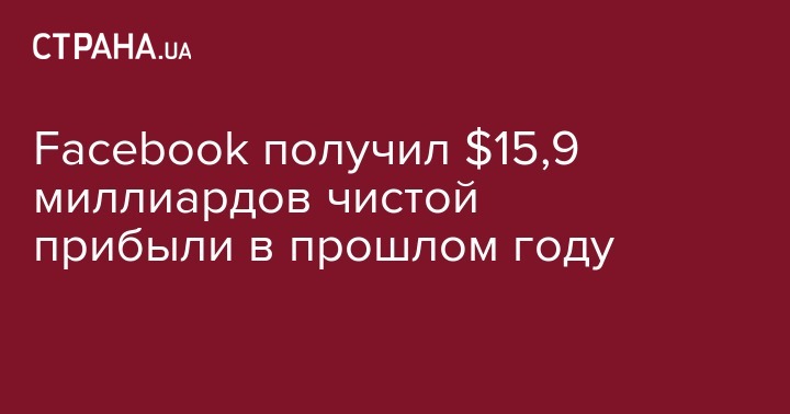Facebook получил $15,9 миллиардов чистой прибыли в прошлом году