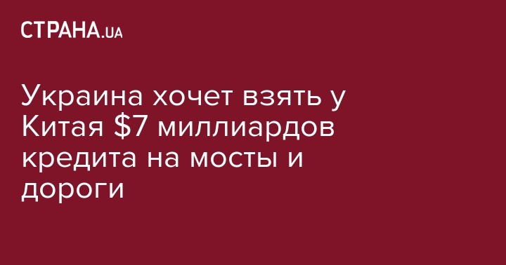 Кабмин собирается заключить с Китаем кредитное соглашение по ряду инфраструктурных проектов общей стоимостью $7 миллиардов.