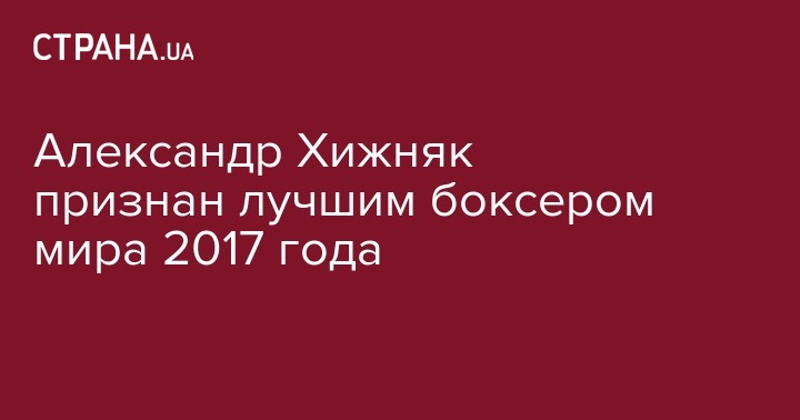 Международная боксерская Ассоциация признала украинца Александра Хижняка лучшим боксером мира независимо от весовых категорий в 2017 году, сообщает Федерация бокса Украины. Последний раз такую награду украинский боксер получал в 2011 году.