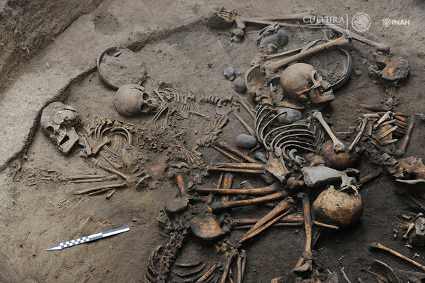 В Мехико археологи обнаружили захоронение, сделанное более 2500 лет назад. Больше десяти человек были похоронены одновременно в круглой могиле, их тела были соединены и расположены спиралью.