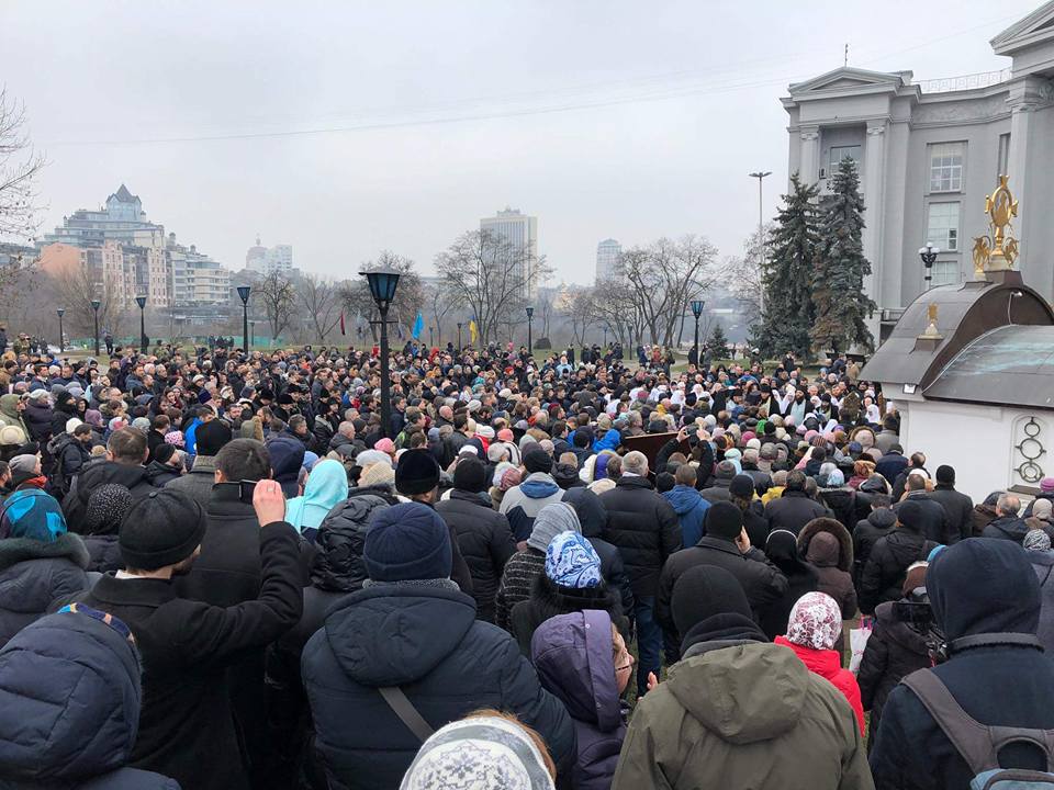 В субботу в Киеве сотни верующих УПЦ пришли к Десятинному монастырю, чтобы защитить храм УПЦ от возможного захвата радикалами. Об этом сообщает Центр информации УПЦ в Facebook.