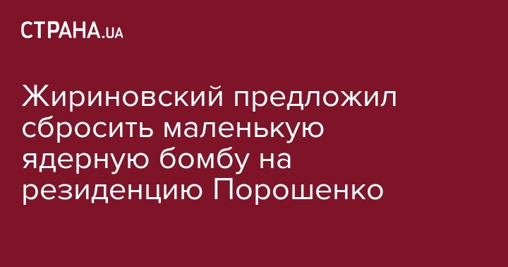 "Маленькую бомбу. Не большая Хиросима, а маленькая. Вот там, где резиденция президента Украины Порошенко, небольшую такую, котлованчик, например... Действует на 10 км. Можете понять? Вот выпить литр водки, или 30 грамм. Разница есть? 30 грамм идет нормально... Ну хорошо, и радиация будет. Но опять, обеспечить минимально вот все это. Можно же этого добиться", – заявил Жириновский.