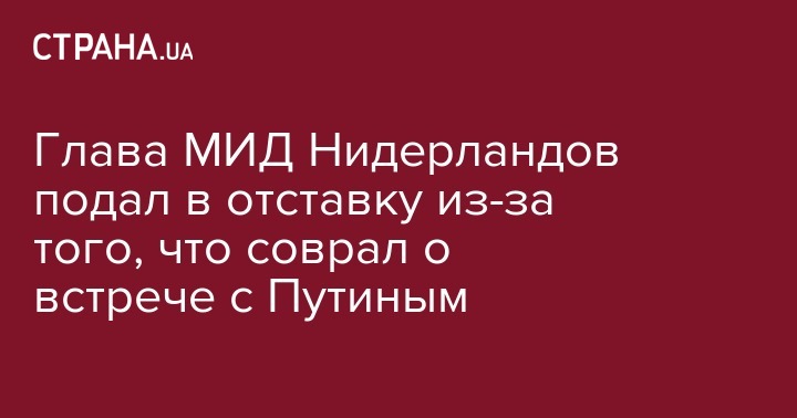 Глава МИД Нидерландов подал в отставку из-за того, что соврал о встрече с Путиным