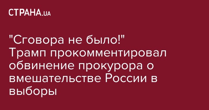 "Сговора не было!" Трамп прокомментировал обвинение прокурора о вмешательстве России в выборы