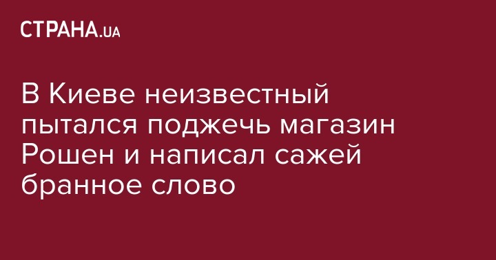 В Киеве неизвестный пытался поджечь магазин Рошен и написал сажей бранное слово