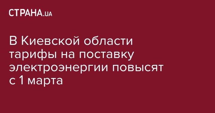 В Киевской области тарифы на поставку электроэнергии повысят с 1 марта