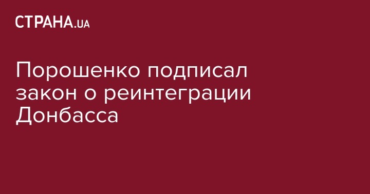 Президент Украины Петр Порошенко подписал закон о реинтеграции Донбасса. Подписание транслировалось на странице главы государства в Facebook.