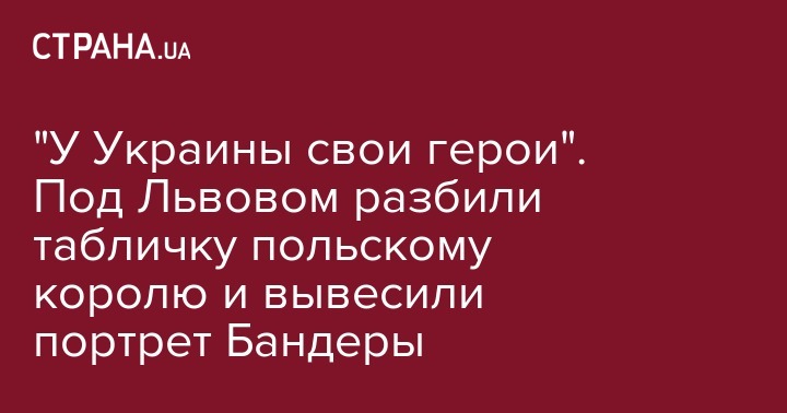 "У Украины свои герои". Под Львовом разбили табличку польскому королю и вывесили портрет Бандеры