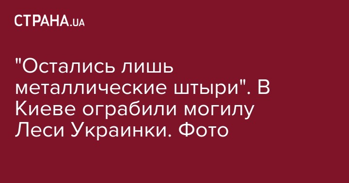 "Остались лишь металлические штыри". В Киеве ограбили могилу Леси Украинки. Фото
