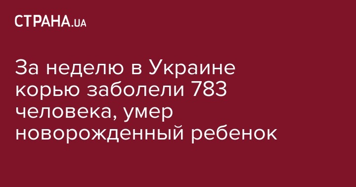 За прошедшую неделю в стране корью заболели 783 человека, что на 5% меньше по сравнению с предыдущей неделей, в Одесской области умер новорожденный ребенок.