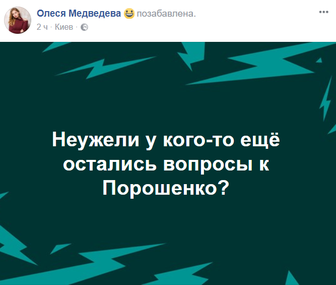 "Неужели у кого-то еще остались вопросы к Порошенко?", - иронизирует журналист Алеся Медведева.