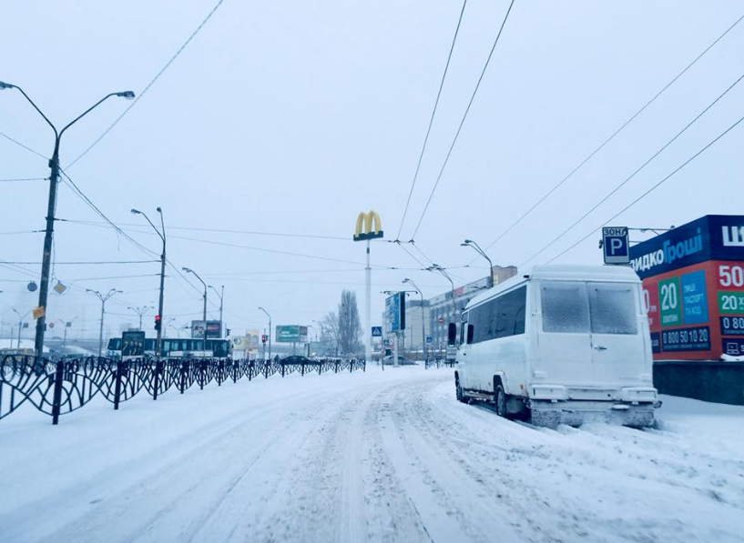 "К черту работу, школу и универ... на дорогах завалы, снег никто не убирает вообще - нет даже колеи для движения, а это центральная магистраль на Троещину", - поделилась она фото.