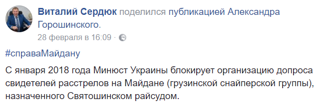 Слово взял адвокат Сердюк. Говорит, что информация, которую собрала защита по делу Майдана, указывает на виновность нынешних руководителей Украины.