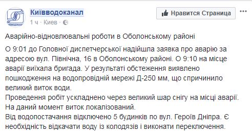 Об этом сообщается на странице "Киевводоканала" в Facebook.