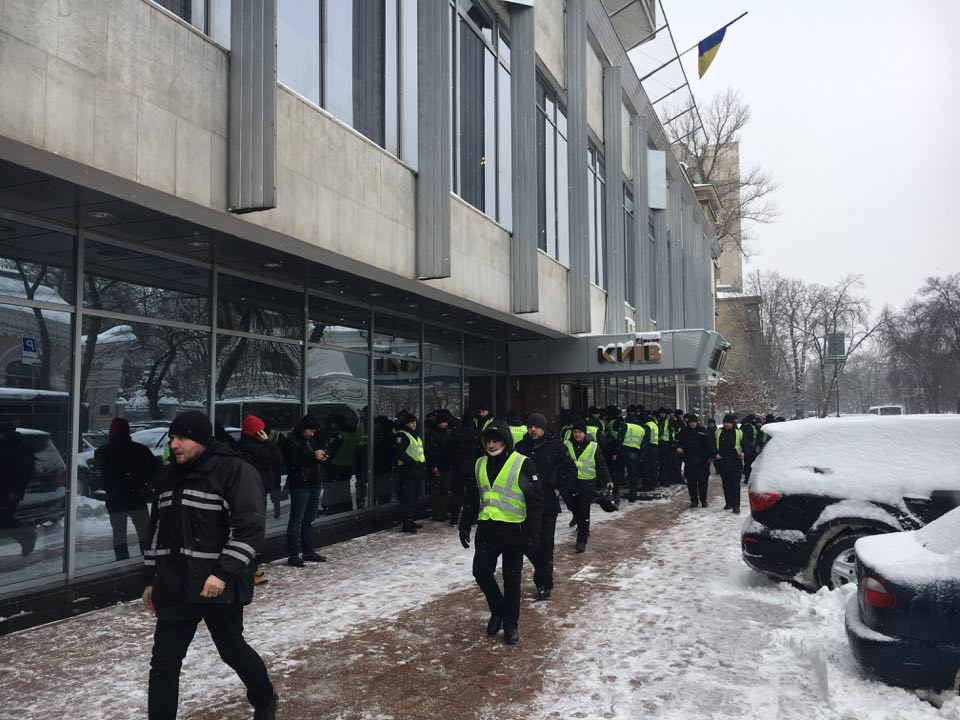 11:02 У входа в гостиницу "Киев" – несколько десятков сотрудников полиции.