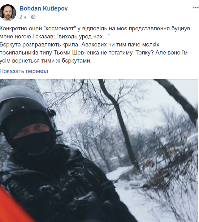 "Почему я двумя руками поддерживаю силовой разгон "михомайдана" в Киеве? Потому что собравшихся там действительно надо пи...дить. Их, и таких как они, и таких как я - очень сильно пи...дить. Чтобы, наконец, поняли - за кого мы проголосовали в 2014 году. И что люди, которые позволяют себе проливать кровь своего же народа - не имеют права называться людьми. Не то, что иметь какие-либо полномочия. Видимо, мало нас ещё били по голове, раз многие до сих пор этого не поняли", - сказал он.