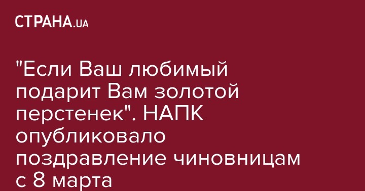 "Если Ваш любимый подарит Вам золотой перстенек". НАПК опубликовало поздравление чиновницам с 8 марта