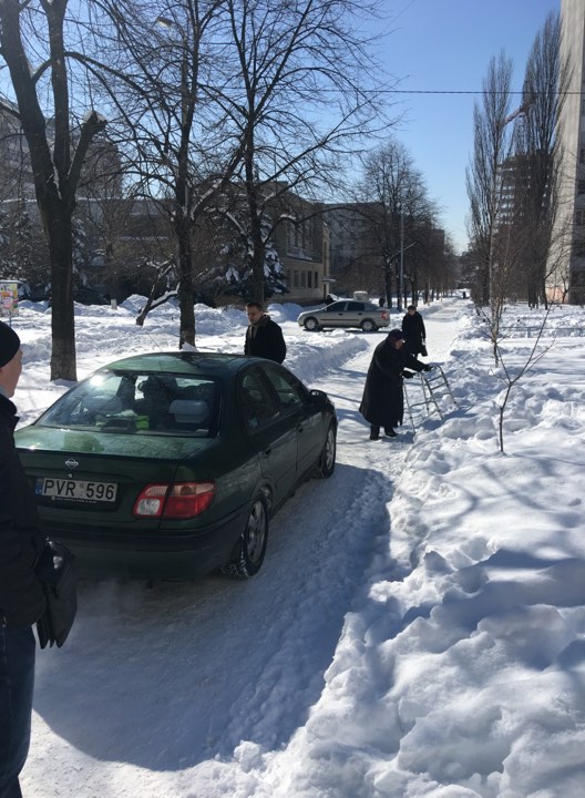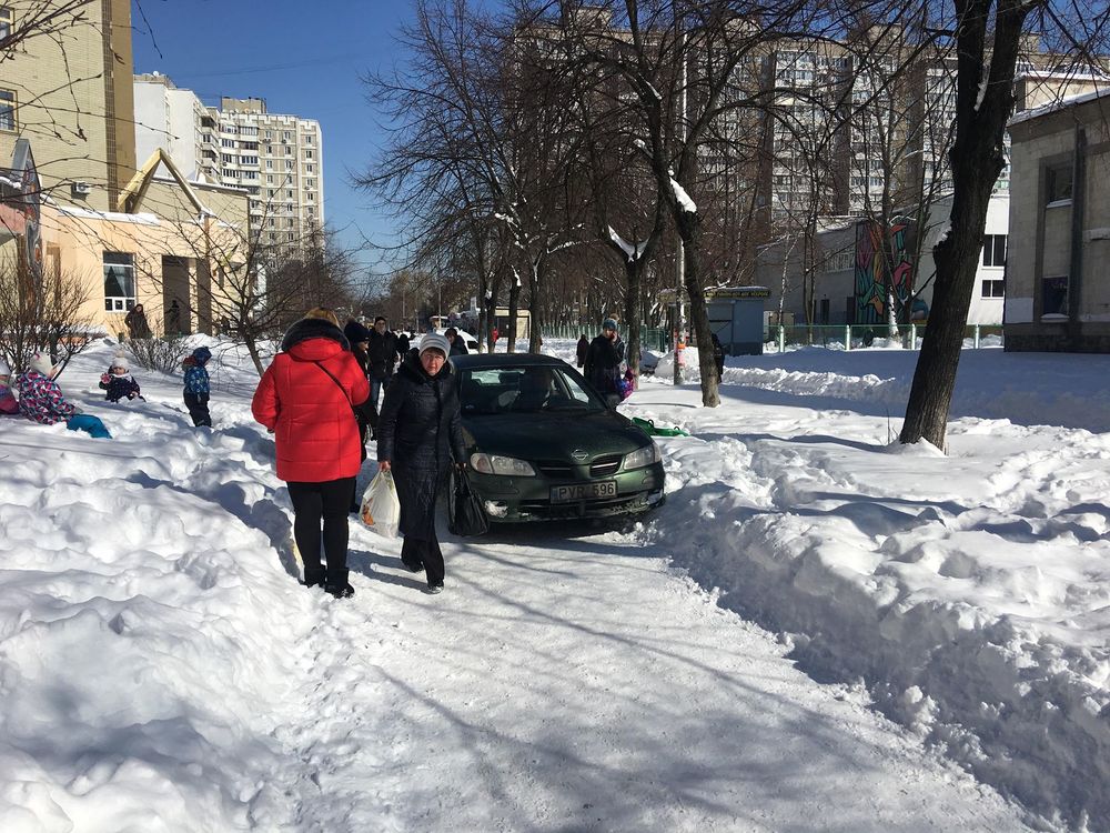 В Киеве автохам выгонял с заснеженного тротуара пешеходов. Фото