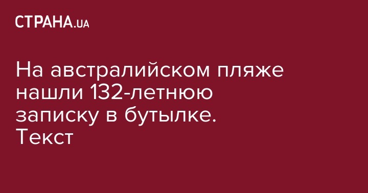 На одном из пляжей Западной Австралии нашли послание в бутылке. Оно было написало 132 года назад - в XIX веке. Предполагается, что это самая старая бутылочная записка из найденных на сегодняшний день.