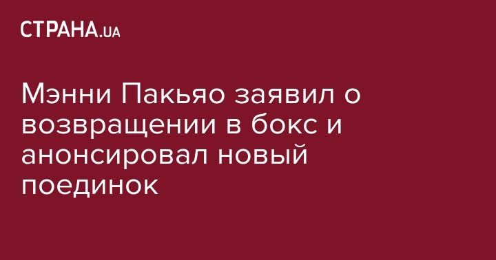 Легендарный экс-чемпион мира по боксу Мэнни Пакьяо объявил о возвращении на ринг.