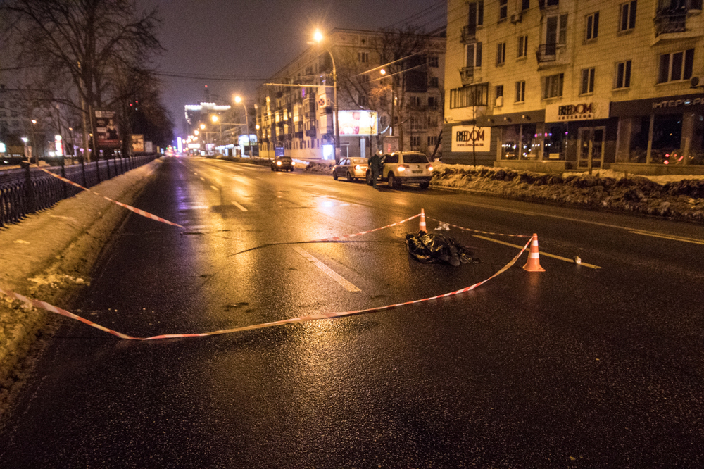 Водитель синего Chevrolet заметил мужчину, который шел по проезжей части в слезах и автомобилю удалось его объехать. А вот водитель второго, черного Chevrolet, который ехал следом за первым, не заметил нарушителя и сбил его.