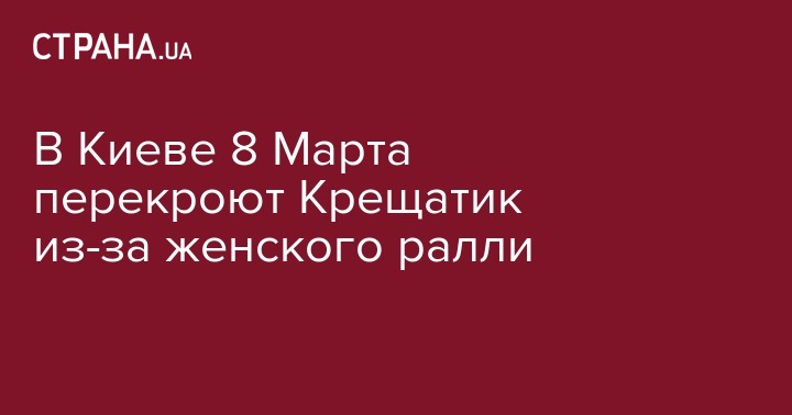Киевская администрация решила перекрыть движение на Крещатике 8 марта в связи с проведением "Большого женского ралли". Об этом сообщает пресс-служба КГГА.