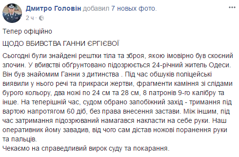 Официальное сообщении о результатах расследования убийства на Молдавнке сообщил глава полиции в Одесской области Дмитрий Головин на своей странице в Facebook.