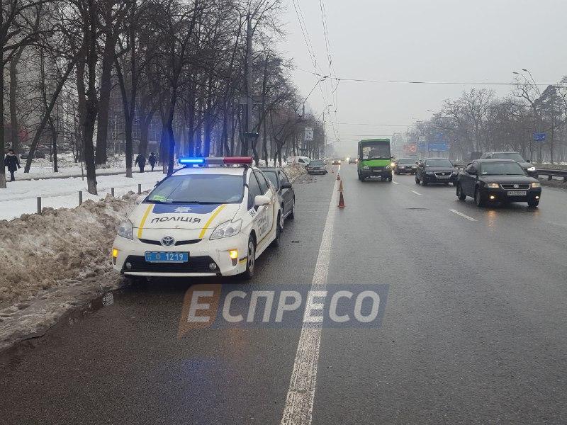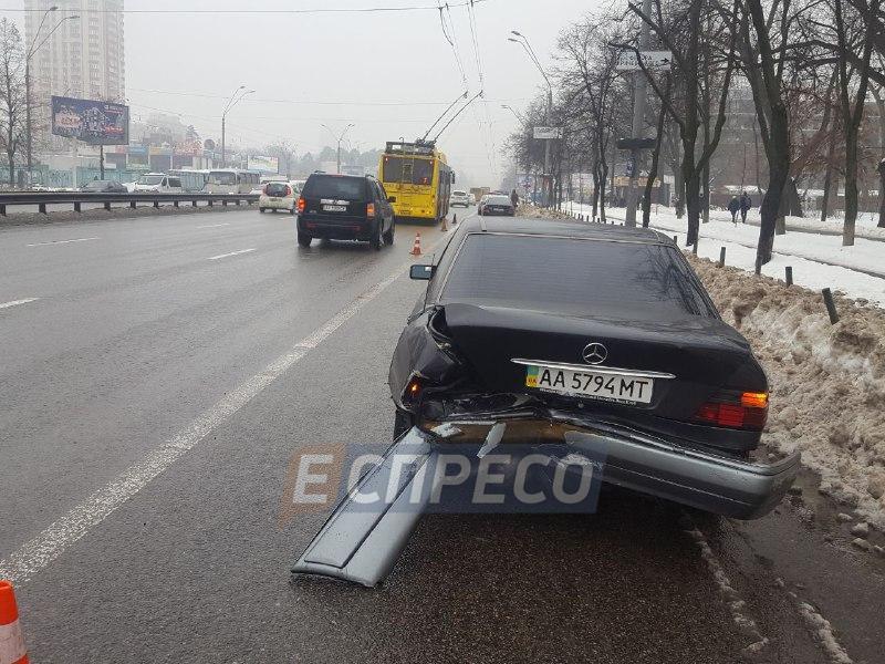В Киеве на "Житомирской" водитель иномарки протаранил патрульное авто. Фото