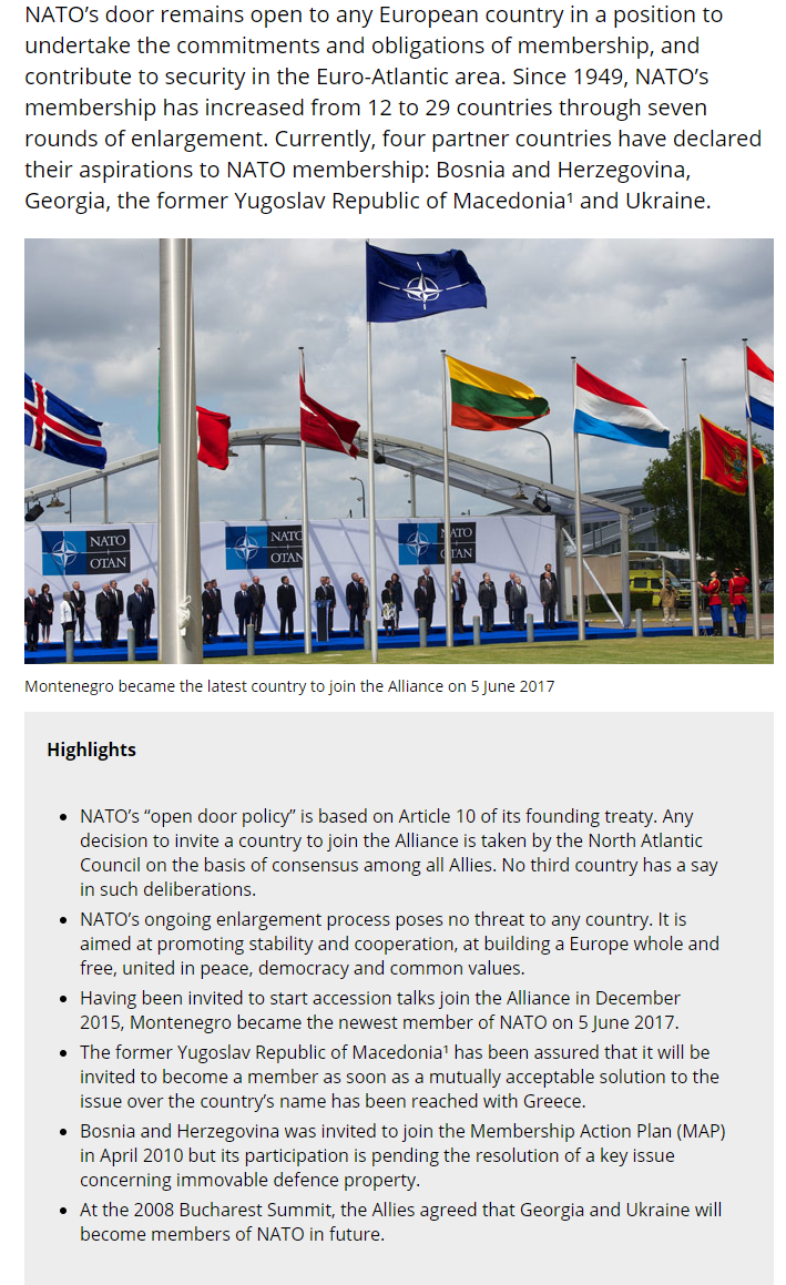 Также пишется, что на саммите в Бухаресте в 2008 году станы-члены Альянса согласились, что Грузия и Украина станут членами НАТО в будущем.