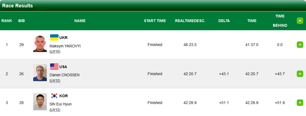 Наш лыжник Максим Яровой, выграл гонку на 15 км для спортсменов с поражением опорно-двигательного аппарата. Серебро завоевал американский спортсмен Дэниел Кноссен, а на третьем месте представитель объединенной команды Кореи Мин Ю Хун.