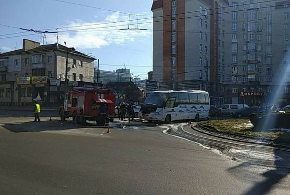 В Тернополе возле церкви загорелся автобус с пассажирами