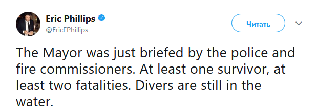 "По меньшей мере один человек выжил, не менее двух погибли​​​",— написал в Twitter Эрик Филипс.