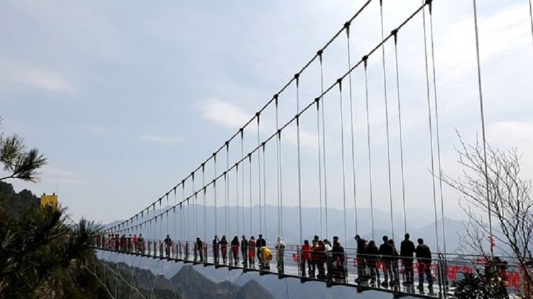 Напомним, самый длинный стеклянный пешеходный мост был открыт в Китае 24 декабря 2017 года в провинции Хэбэй. Его длина составляет 488 метров, а ширина - около двух. Мост соединяет два горных пика в местечке Хунъягу в уезде Пиншань и сооружен на высоте 218 метров над простирающейся внизу долиной. Он уложен 1077 стеклянными панелями толщиной около 4 см, общий вес которых достигает 70 тонн.