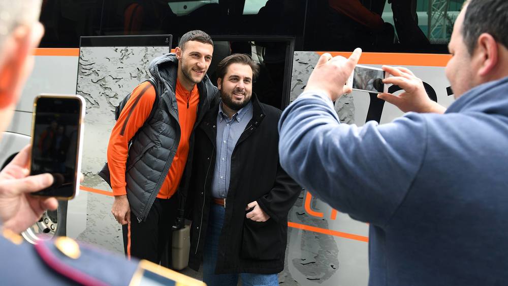21:32 На улицах Вечного города перед матчем болельщики делали селфи с "горняками".
