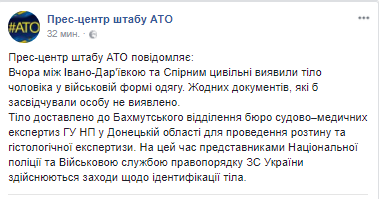 О характере повреждений или причине смерти в пресс-центре АТО не сообщают.